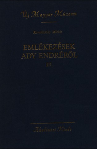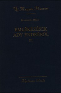 Kovalovszky, Miklós, ed. (1987) Emlékezések Ady Endréről 3. köt. Új magyar múzeum, Irodalmi dokumentumok gyűjteménye (12). Akadémiai Kiadó, Budapest.