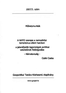 Csáki, Csaba (2007) A NATO szerepe a nemzetközi terrorizmus elleni harcban a jelentősebb tagországok politikai vetületének feldolgozása - Németország -. Műhelymunkák (5). Geopolitikai Tanács Közhasznú Alapítvány, Budapest. ISBN 9789639816169