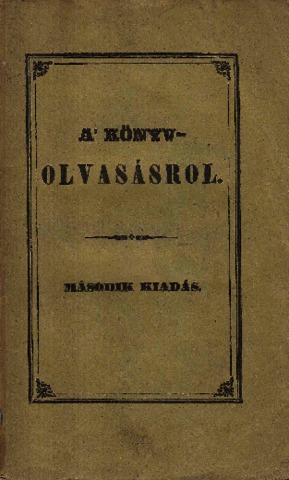 Alexovics, Vazul (1848) A' könyvolvasásról. Ramasetter Károly, Veszprém.