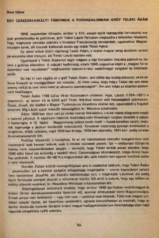 Bona, Gábor (1987) Egy császári-királyi tábornok a forradalomban: Gróf Teleki Ádám. In: Teleki és kora: Szirák, 1985. november 12-13. Discussiones Nogradienses (3). Nógrád Megyei Múzeumok Igazgatósága, Salgótarján, pp. 55-60. ISBN 9630180138