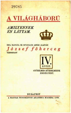 Habsburg, József (1930) A világháború amilyennek én láttam. A világháború amilyennek én láttam, 4 . UNSPECIFIED, Budapest.