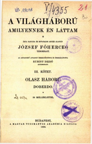 Habsburg, József (1928) A világháború amilyennek én láttam. A világháború amilyennek én láttam, 3 . UNSPECIFIED, Budapest.