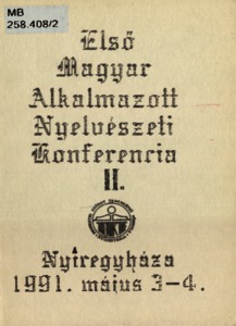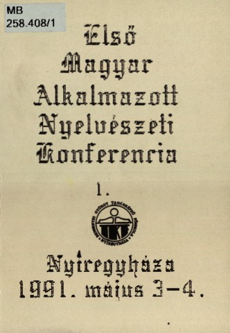Székely, Gábor, ed. (1991) Első Magyar Alkalmazott Nyelvészeti Konferencia I–II. : . Nyíregyháza, 1991. május 3–4. Magyar Alkalmazott Nyelvészeti Kongresszus, 1-2 . Nyíregyházi Főiskola, Nyíregyháza. ISBN 963-717-026-X