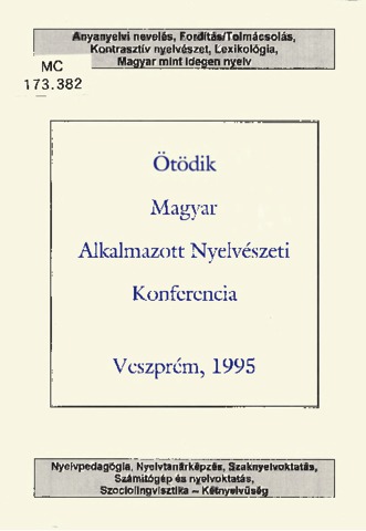 Lengyel, Zsolt and Navracsics, Judit, eds. (1995) Ötödik Magyar Alkalmazott Nyelvészeti Konferencia: "Európai és hazai dimneziók". Magyar Alkalmazott Nyelvészeti Kongresszus . Veszprémi Egyetem, Veszprém. ISBN 963-733-250-2