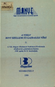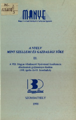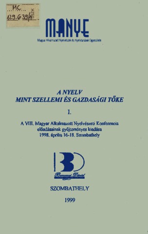 Balaskó, Mária and Kohn, János, eds. (1998) A VIII. Magyar Alkalmazott Nyelvészeti Konferencia előadásainak gyűjteményes kiadása. : A nyelv mint szellemi és gazdasági tőke. I–III., 1998. április 16–18. Magyar Alkalmazott Nyelvészeti Kongresszus . Szombathely: BDTF Alkalmazott Nyelvészeti Tanszék, Szombathely. ISBN 963-901-775-2