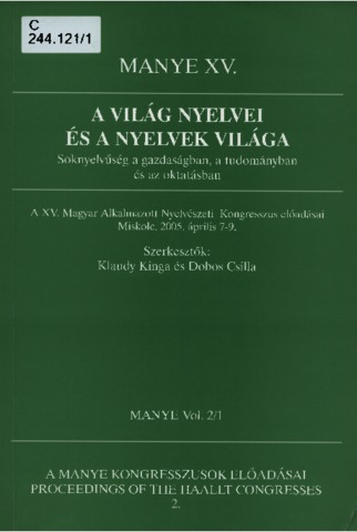 Klaudy, Kinga and Dobos, Csilla, eds. (2006) A világ nyelvei és a nyelvek világa : Soknyelvűség a gazdaságban, a tudományban és az oktatásban. A MANYE Kongresszusok Előadásai, 1-2 . Magyar Alkalmazott Nyelvészek és Nyelvtanárok Egyesülete - Miskolci Egyetem, Pécs - Miskolc. ISBN 963-661-697-3