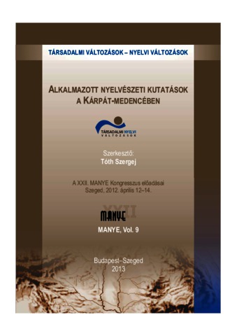 Tóth, Szergej, ed. (2013) Társadalmi változások - nyelvi változások : Alkalmazott nyelvészeti kutatások a Kárpát-medencében. A MANYE Kongresszusok Előadásai . Magyar Alkalmazott Nyelvészek és Nyelvtanárok Egyesülete, Szegedi Egyetemi Kiadó Juhász Gyula Felsőoktatási Kiadó, Budapest–Szeged. ISBN 978-963-9927-62-9