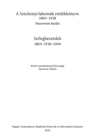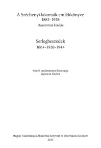 Gyuricza, Andrea, ed. (2025) A Széchenyi-lakomák emlékkönyve 1883-1938 : Hasonmás kiadás : Serlegbeszédek 1864-1938-1944. Magyar Tudományos Akadémia Könyvtár és Információs Központ, Budapest. ISBN 9786156792167