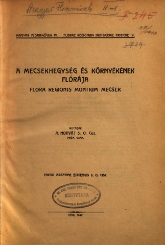 Horvát, Adolf Olivér (1942) A Mecsekhegység és környékének flórája. Magyar flóraművek (4). Editio Abbatiae Zircensis S. O . Cist., Pécs.
