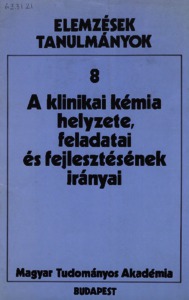 UNSPECIFIED, ed. (1983) A klinikai kémia helyzete, feladatai és fejlesztésének irányai. Elemzések, tanulmányok, 8 . Magyar Tudományos Akadémia, Budapest. ISBN 9637301887
