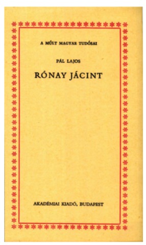 Pál, Lajos (1976) Rónay Jácint. A múlt magyar tudósai . Akadémiai Kiadó, Budapest. ISBN 963-05-1044-8