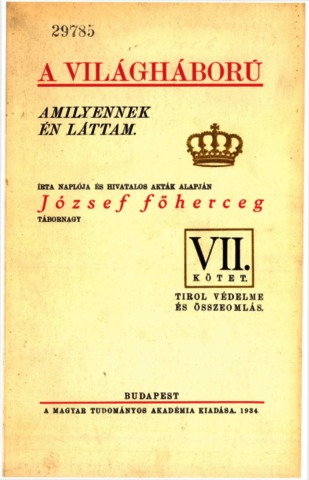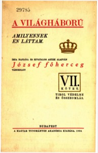 Habsburg, József (1934) A világháború amilyennek én láttam. A világháború amilyennek én láttam, 7 . UNSPECIFIED, Budapest.
